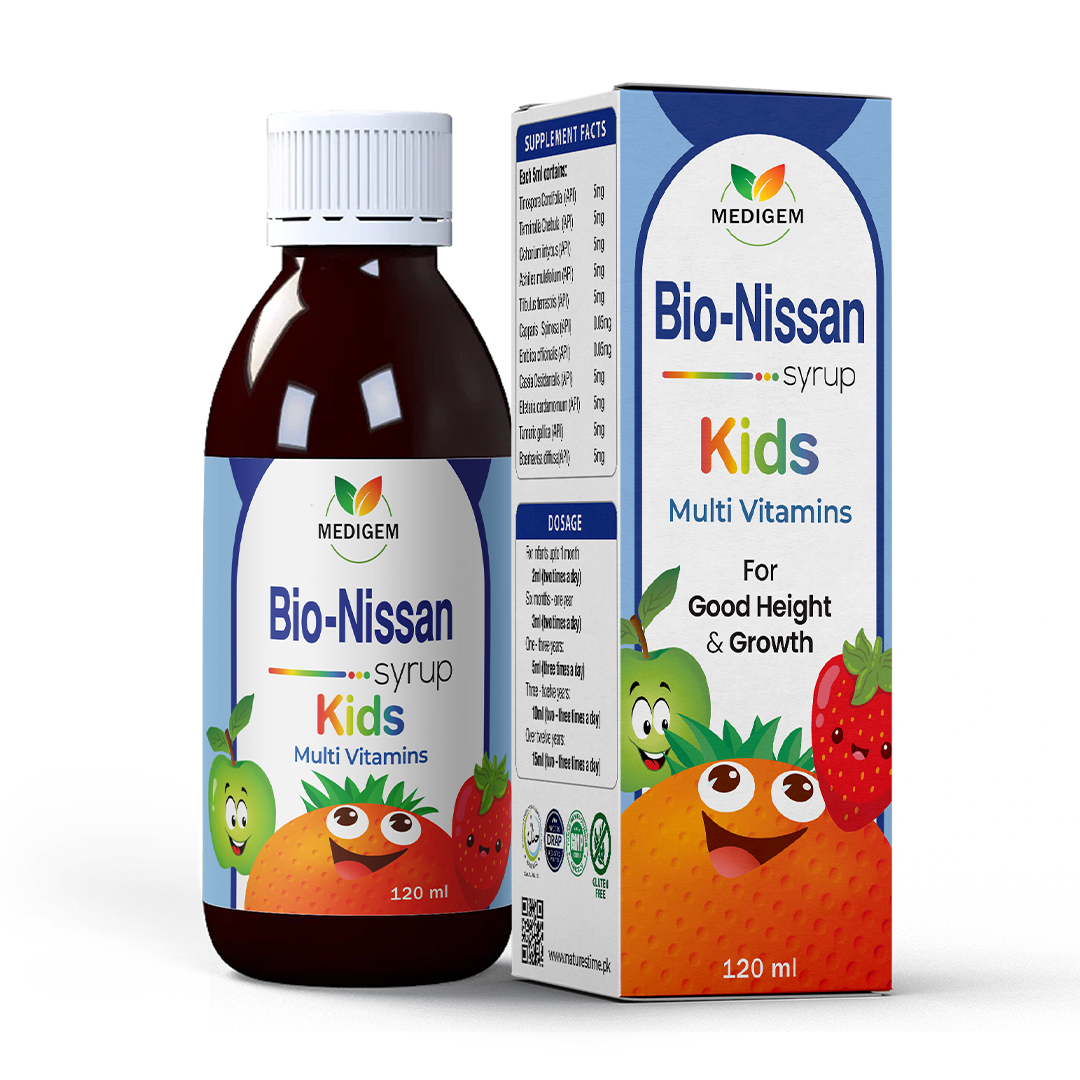 - BIO-NISSAN contains multivitamins including vitamins A, D, C, E, and B-Complex that aid in children's general health, growth, and development.